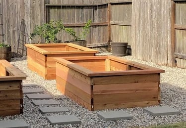 Custom, well-built raised garden beds designed to fit your esthetic and improve drainage, soil quality, and planting ease.
